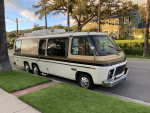 62,000 original miles, incredibly clean, rust-free California coach. Great additional living space! Stored under cover, paint in great condition, 403 Olds engine. Recent extensive mechanical service done by a Cinnabar-recommended SoCal GMC mechanic.