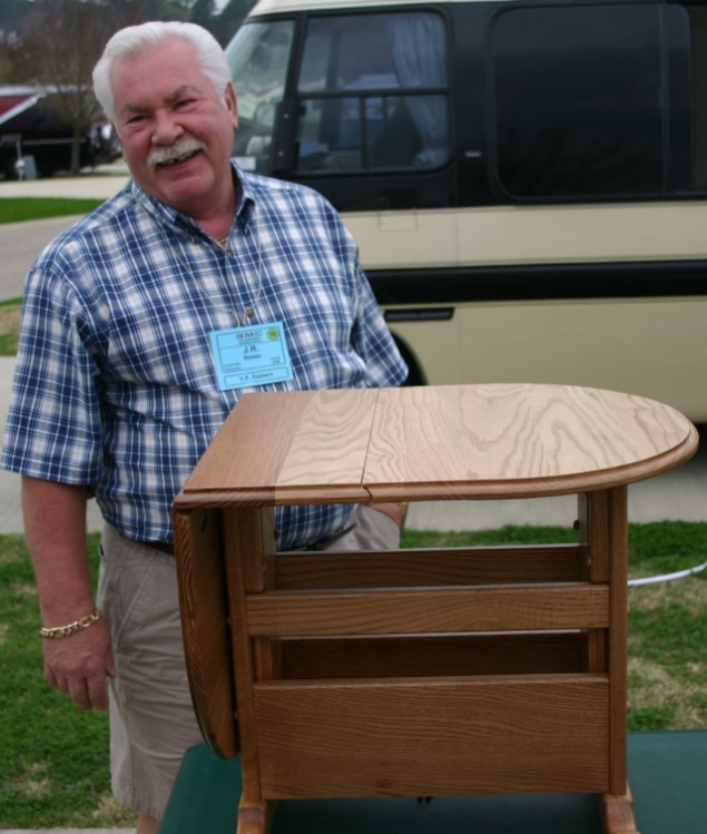 These neat little tables come in either oak or cherry. They're just right to go between the cockpit seats and then move down to between a couple of barrel chairs when parked. They fold up neatly for storage or travel and include a magazine / map rack. |