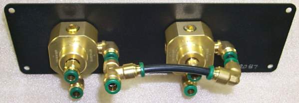 I offer a replacement for the OEM rotary leveling valves. The originals are made of a pot metal material and have been the source of continuous problems from the very beginning. My valve set consists of two high quality brass valves, a new face plate, and all new quick connect fittings. These valves are rated at zero leakage at 1000 lb.psi. This is a little more than our 125 lb.psi max. These are the best valves I could find at a reasonable cost. This set is an exact replacement for the original and needs no alterations to replace the existing set.