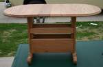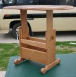 These neat little tables come in either oak or cherry. They're just right to go between the cockpit seats and then move down to between a couple of barrel chairs when parked. They fold up neatly for storage or travel and include a magazine / map rack. |